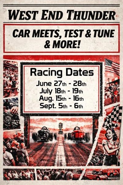 At West End Thunder, we believe in the power of motorsports to bring people together and foster a sense of community. We strive to improve our organization each and every year and this year is no exception. We are excited to bring you FREE test n' tune every Friday night before the main event begins each Saturday morning. The goal is to give our racers as much value as possible, as well as to create an environment where newcomers can try out racing without any commitment. We're so excited to welcome you to our track this year!